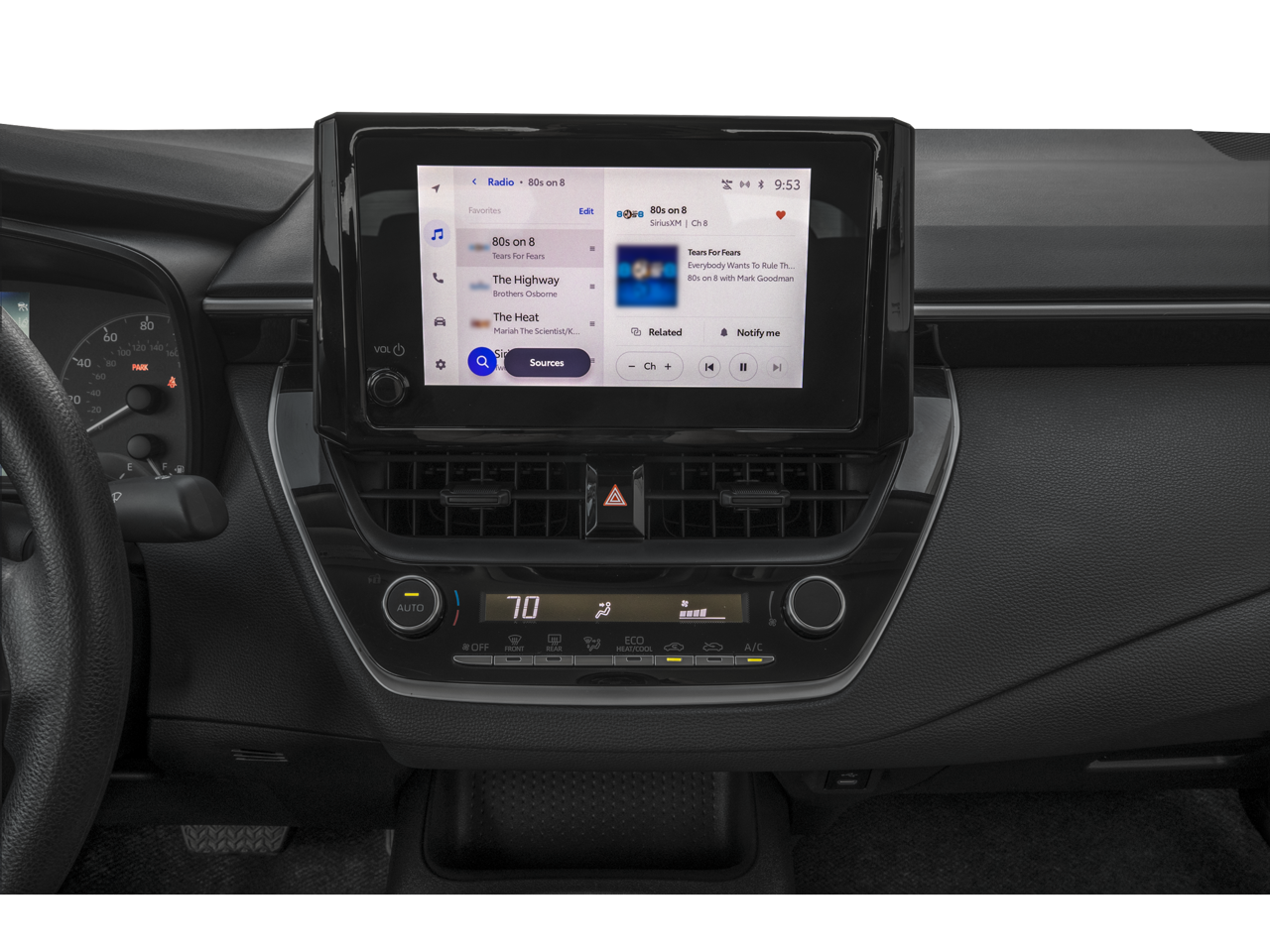 • 8-in. Toyota Audio Multimedia touchscreen with six speakers, wireless Apple CarPlay® & Android Auto™ compatibility, SiriusXM® 3-month trial subscription. See toyota.com/audio-multimedia for details.