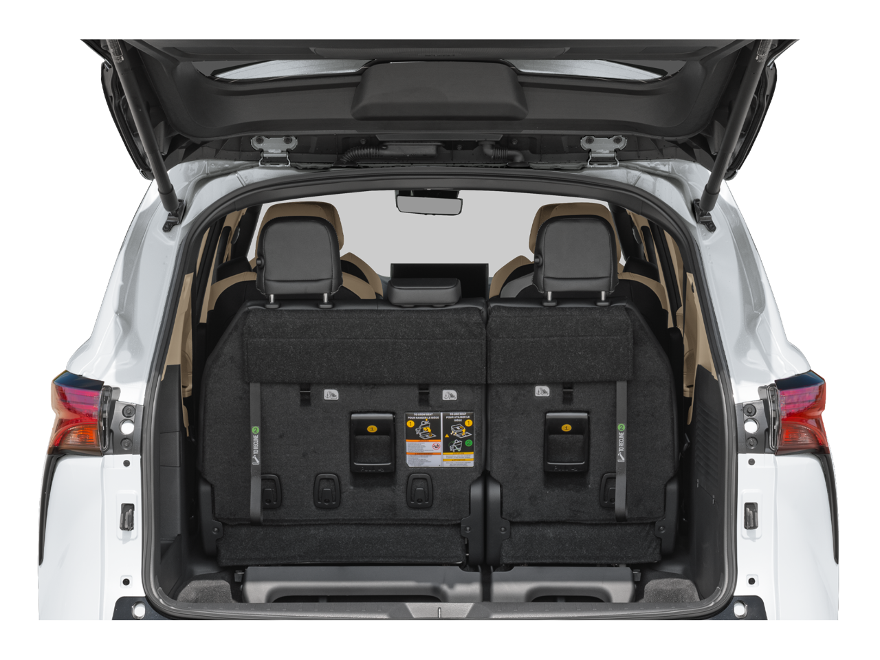 • Fixed 60-40 Split-Bench 3rd Row Seat Front, Manual Recline, Manual Fold Into Floor, 3 Manual and Adjustable Head Restraints